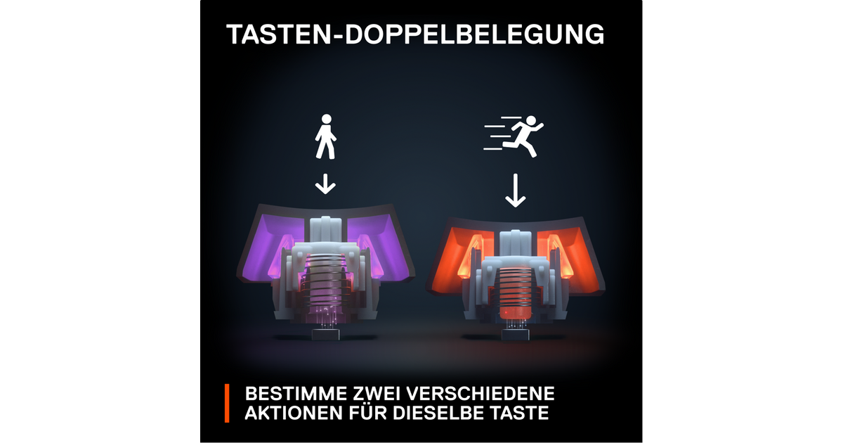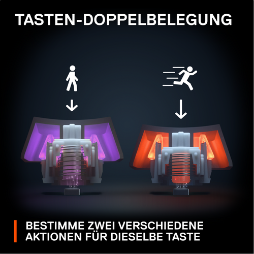 Program two actions to a single key, depending on how you press it. Walk forward with a light keypress, and then sprint by pressing that same key deeper. Create your own advanced combos to overtake the competition.