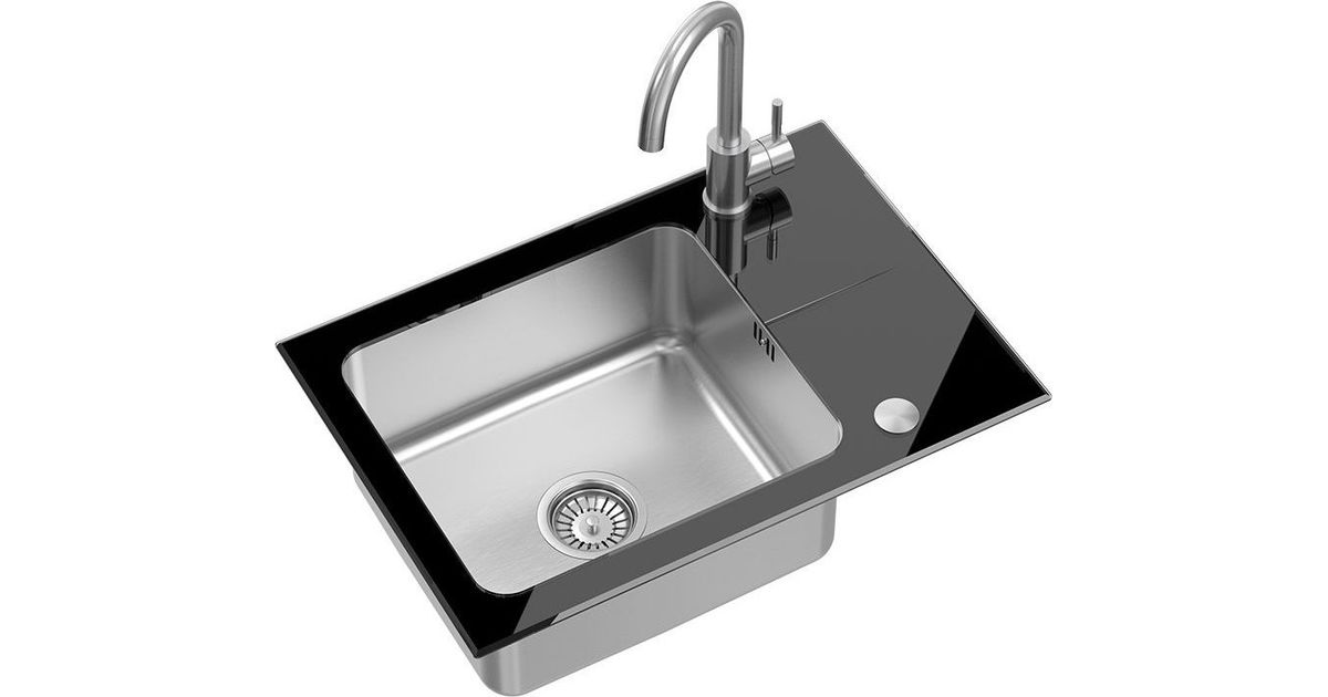 Steiner HUGH 116 sink, steel bowl, black glass top, siphon and cover (640x440/R35) + KATE SteelQ steel kitchen faucet, brushed steel - Sinks - Kitchen and Dining room - Furniture - Home - MT Shop