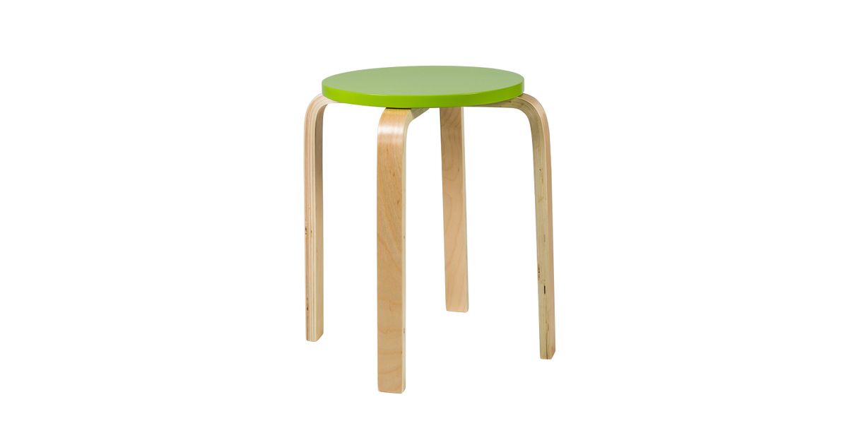 Stool SIXTY-1 D41xH45cm, green. Classic stackable stool. Material: glulam with birch veneer. Seat diameter 32cm, thickness 2cm. Leg: width 4cm, thickness 2cm.