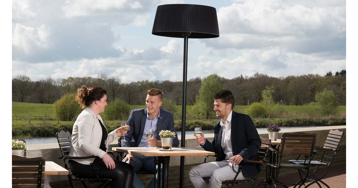 The ARTIX Bright standing edition is a innovating model from the SUNRED® collection. This patio heater not only gives a stylish look and feel to your terrace, but also spreads pleasant warmth. The modernly designed hood gives the heater a warm and stylish appearance.