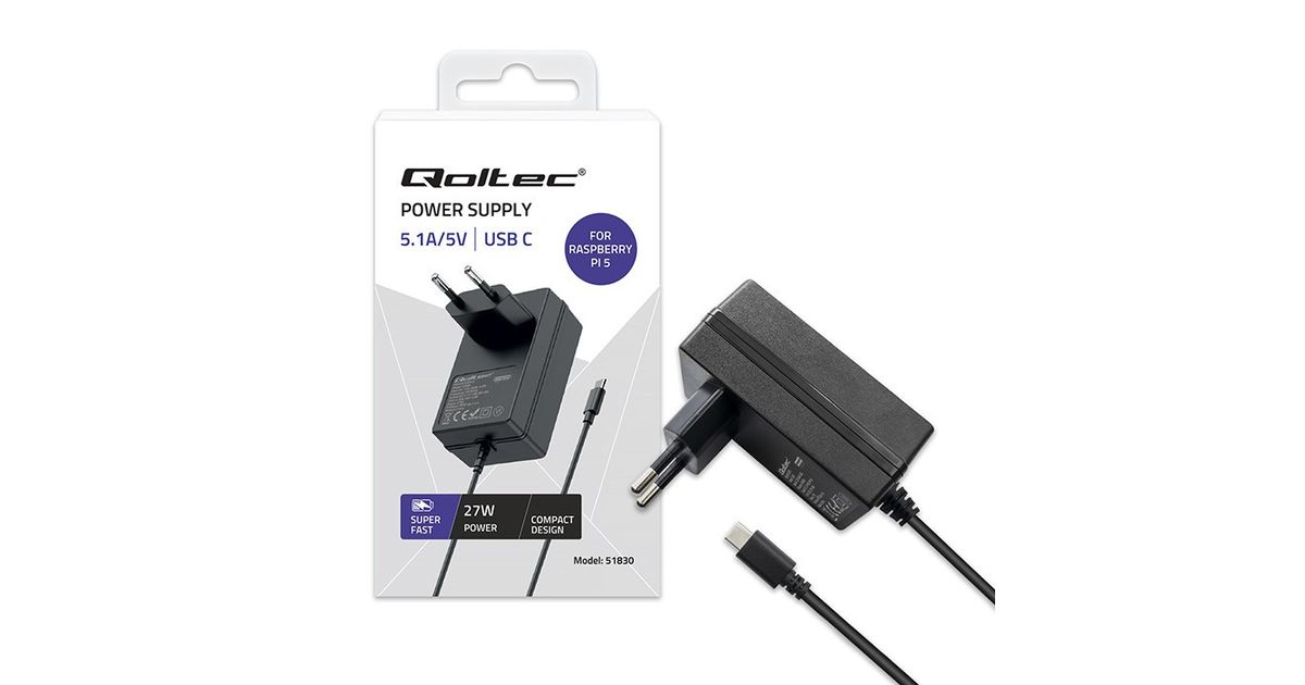 Our dedicated charger for Raspberry Pi 5 uses the Power Delivery standard to efficiently manage power even with numerous accessories connected, such as external drives, cameras, keyboards or displays. It allows the Raspberry Pi5 to deliver exactly the required 27W, ensuring stable operation even under heavy load. Power Delivery is a universal standard, meaning the charger can be used with a wide variety of devices with a USB-C connector - from smartphones and tablets to computers and Raspberry Pi.