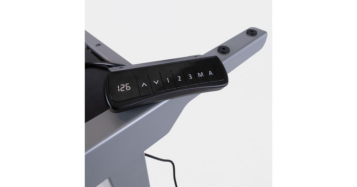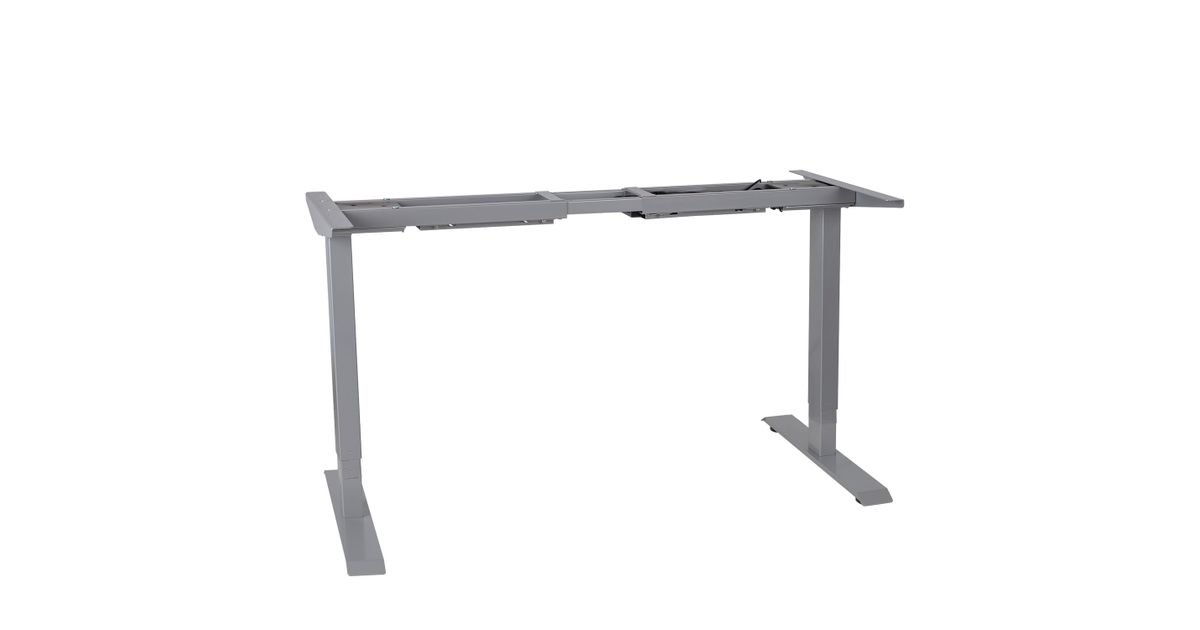Table leg ERGO with 2-motors, silver grey. Make your work environment comfortable and stay healthy! Opportunity to switch between sitting and standing working positions helps prevent neck and back pain. Working in a standing position, a person spends 0,7 calories per minute more than sitting. Two electric motors and a three-phase lifting system ensure fast, smooth and quiet (<50dB) motion. Maximum lift speed 38mm per second. The height of the table can be adjusted in the range of 60-125cm. Width adjustable from 110-190cm. Maximum load capacity at full speed 125kg. Recommended work surface dimensions 60-80x120-200cm. Input voltage: 100V-240V. 3 positions can be stored in the device memory. Before using the product, read the instructions carefully and keep the manual.