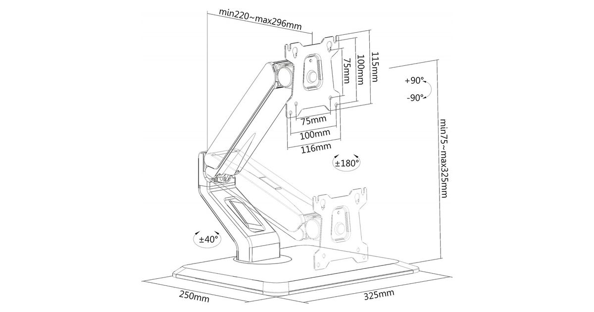 With touch screen monitors taking the market by storm, you deserve suitable monitor supports to produce high quality work, and that’s exactly why the ICA-LCD 35TS desk stand was created. With improved tilt, rotating base and smooth adjustments, our stand offers total control and positioning of 17"-32" touch screen monitors combined with a stable platform for drawing, illustrating, reading and more. Engineered with a quality internal gas spring mechanism that provides smooth height adjustments from 75 to 325 mm while firmly holding devices up to 10 kg. A convenient keyhole pattern assures faster and easier installation while cable management offers a clutter-free work area.