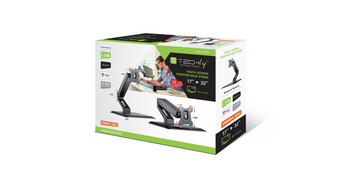 Techly ICA-LCD 35TS, Freestanding, 10 kg, 43.2 cm (17"), 81.3 cm (32"), 100 x 100 mm, Black
