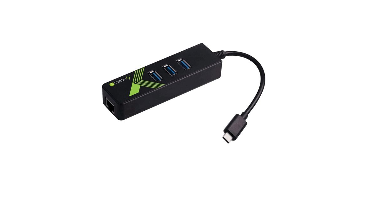 Techly IDATA USB-ETGIGA-3C2, USB 3.2 Gen 1 (3.1 Gen 1) Type-C, RJ-45, USB 3.2 Gen 1 (3.1 Gen 1) Type-A, 5000 Mbit/s, Black, 0.14 m, Gigabit Ethernet