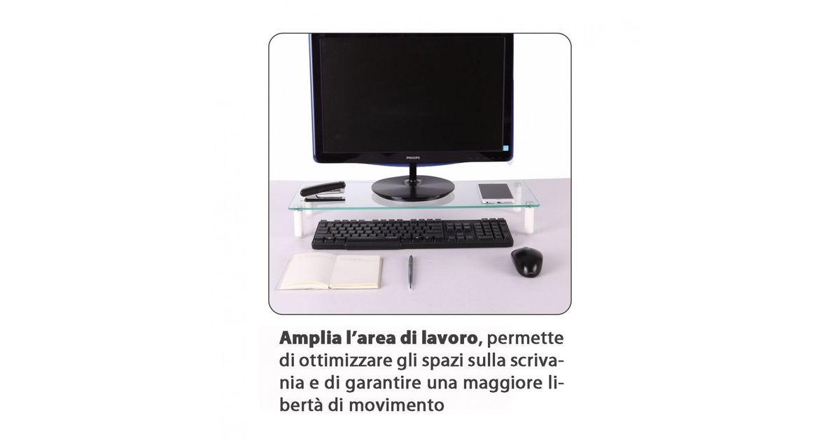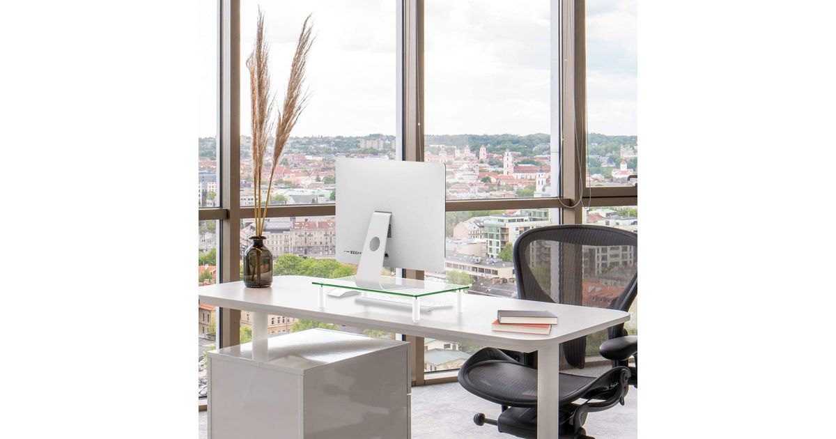 - Expands your work area upward, maximizing your available work area, creates additional horizontal surface under the monitors to store your laptop, keyboard or other office related document or accessories