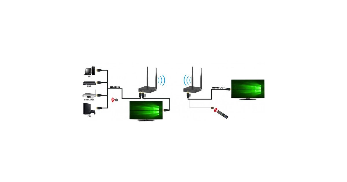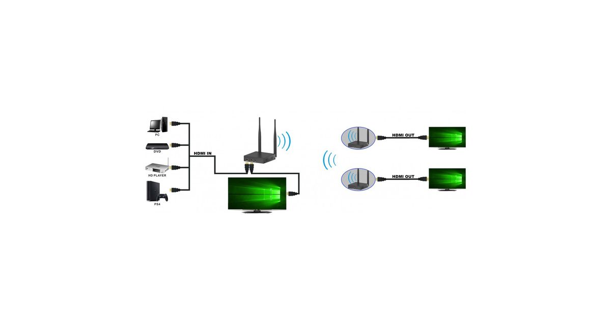 This HDMI extender consists of a transmitter and a receiver unit and allows you to extend the HDMI signal without the use of cables from the source to the screen up to 200 meters. It works by exploiting the operating frequency of 5GHz so it is particularly resistant to interference. It supports one-to-one and one-to-two connection. It's the ideal solution for conferences, meetings, training and educational environments, entertainment and more.