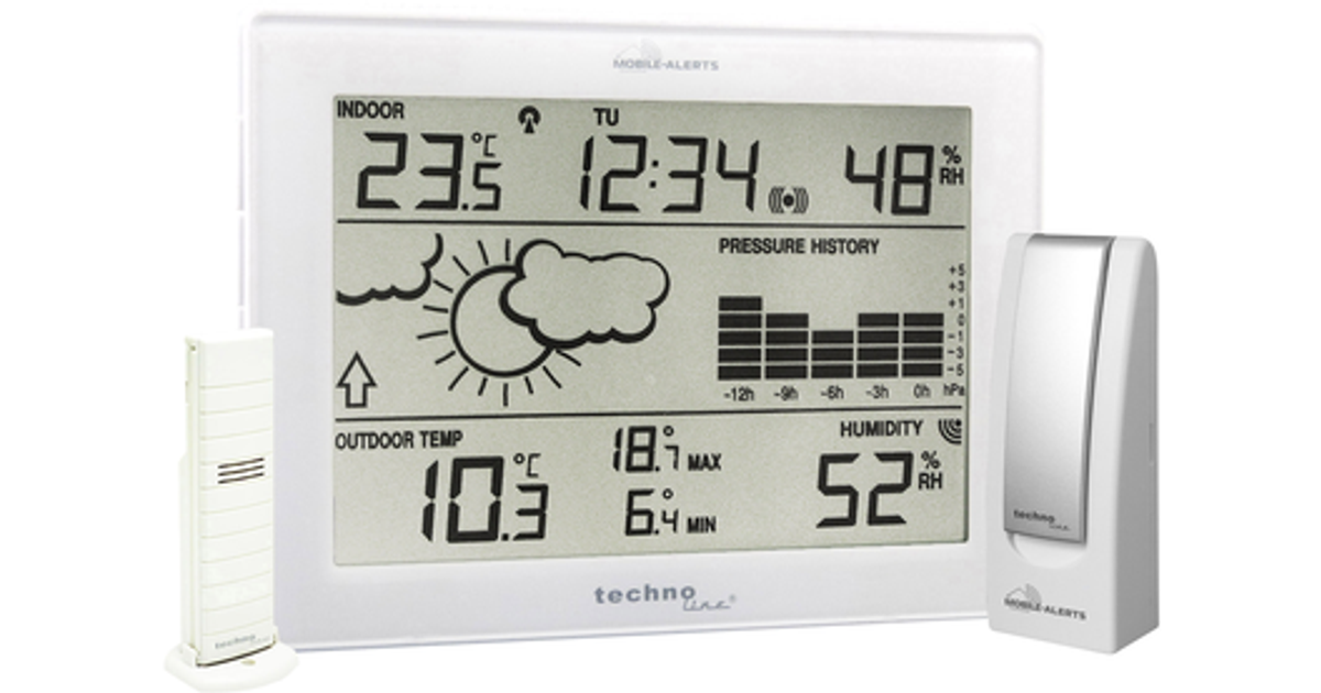 Technoline MA 10006, White, Indoor hygrometer, Indoor thermometer, Outdoor hygrometer, Outdoor thermometer, Barometer, Thermometer, °C, 100 m