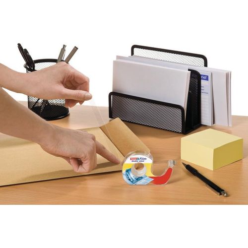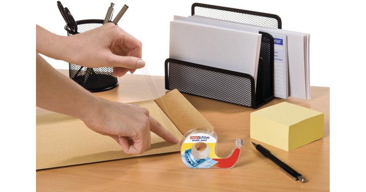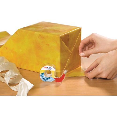 As the name indicates, tesafilm® double-sided self-adhesive tape matches a wide range of applications calling for discreet, fixing of paper or cardboard. The transparent tape is free from PVC and solvents. It consists of highly age-resistant Polypropylene foil with a solvent-free adhesive coating on both sides. tesafilm® double-sided invisible office tape is very thin. It comes in a special dispenser for easy unwinding and convenient application.