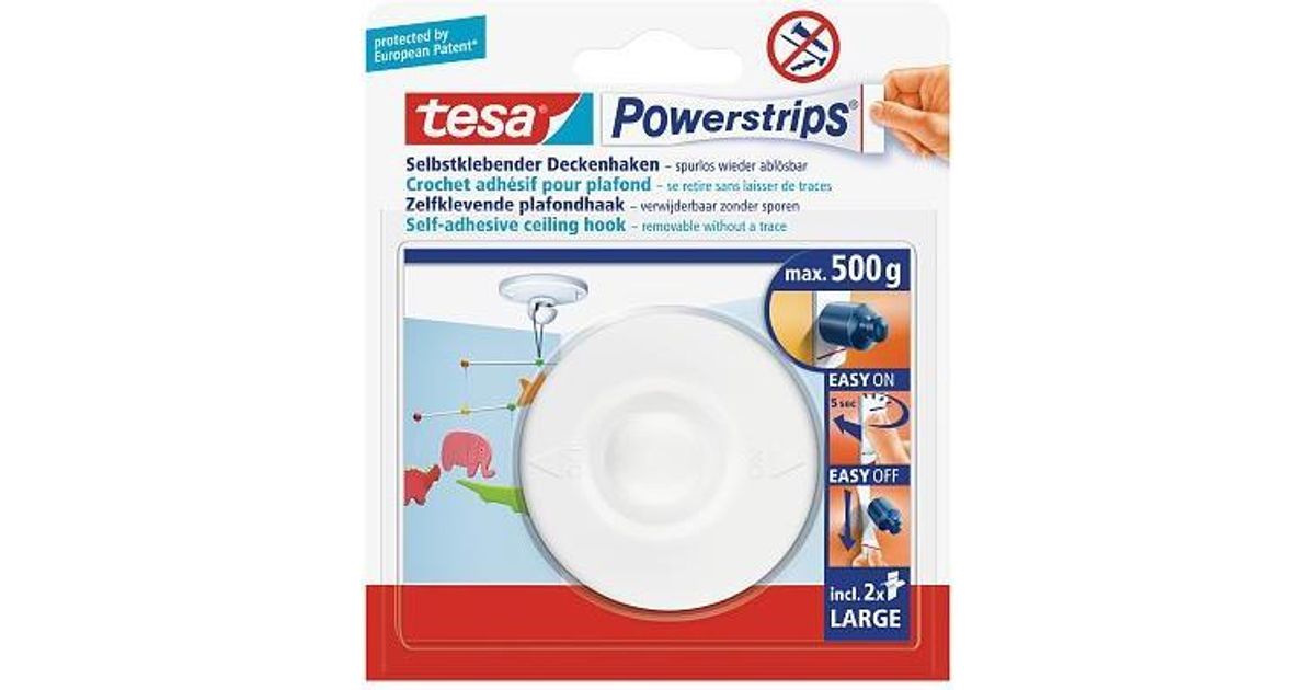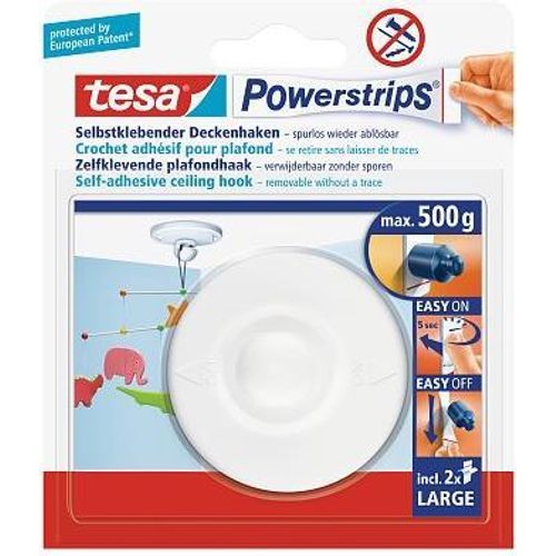 TESA Powerstrips, Indoor, Universal hook, White, Plastic, Adhesive strip, 0.5 kg