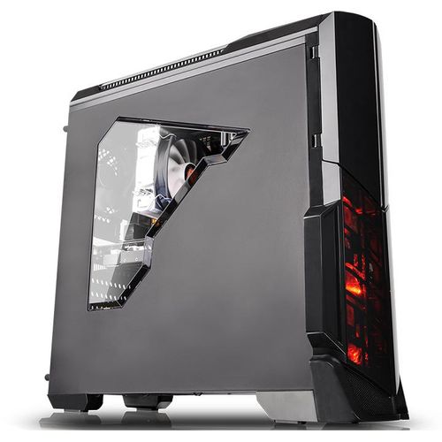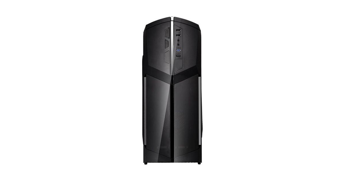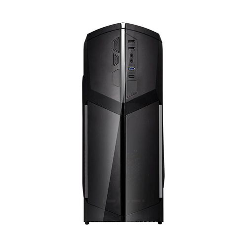 Designed for gamer, the glossy black front/top panels deliver stylish images. The heightened foot-stands at the bottom help enhance airflow, and a triangular transparent side window offers a direct view of the inner system.