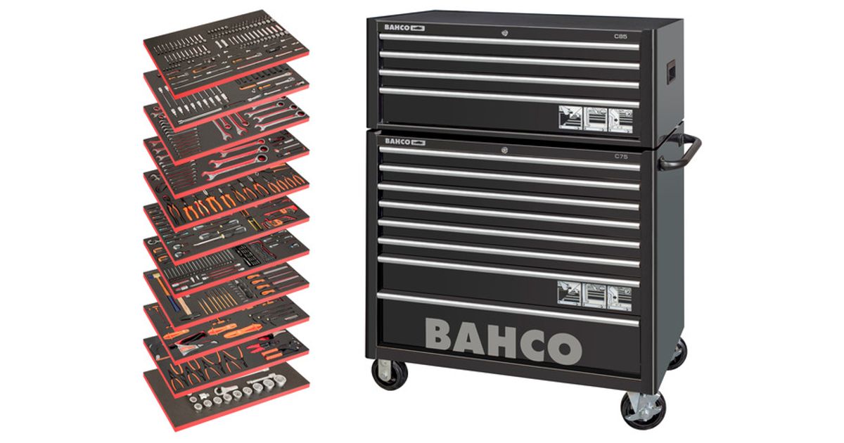 • Heavy duty 40" tool trolley composed of 8 drawer C75 trolley plus 4 drawer E85 top chest plus foam assortment