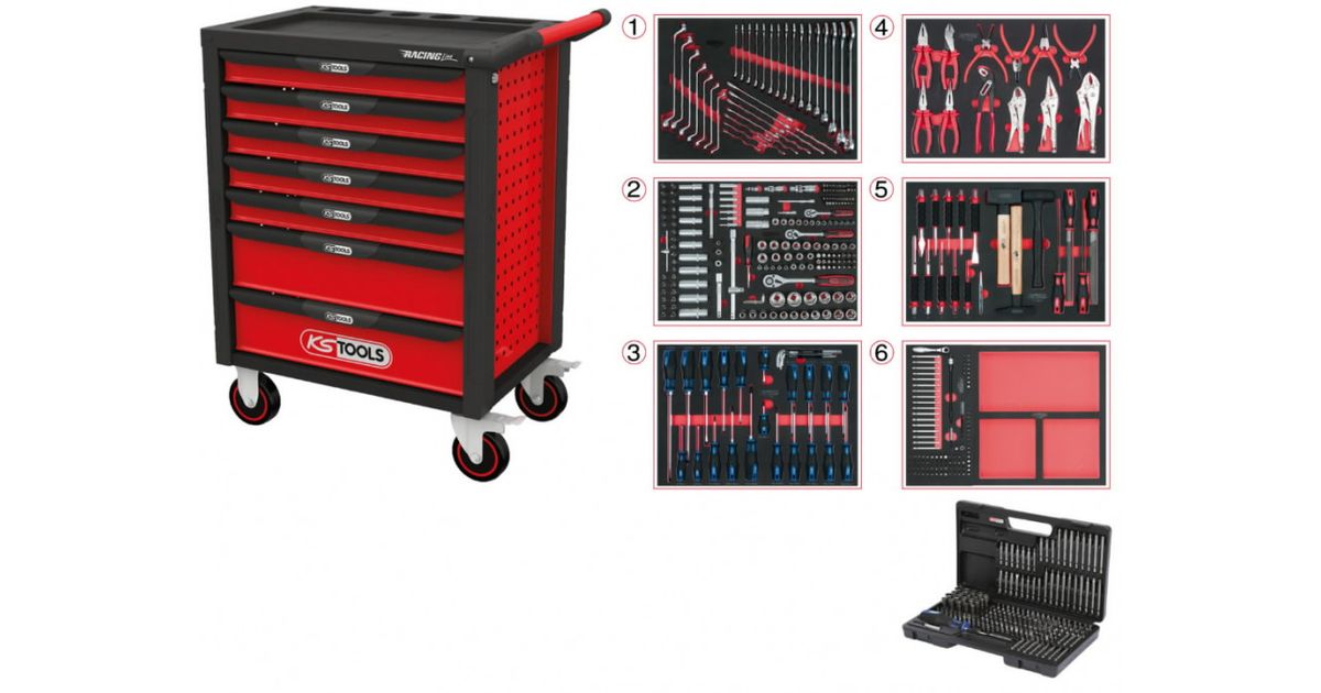 Tööriistakäru KS TOOLS RACINGline, 7 sahtlit + 598-osaline komplekt