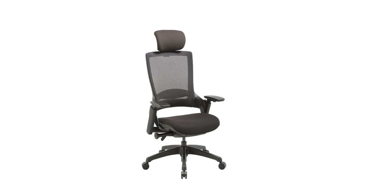 Töötool MELLET-E peatoega, must võrkseljatugi, 3D reg. käetoed / must kangas+must nailon jalarist, D60 plastikrattad