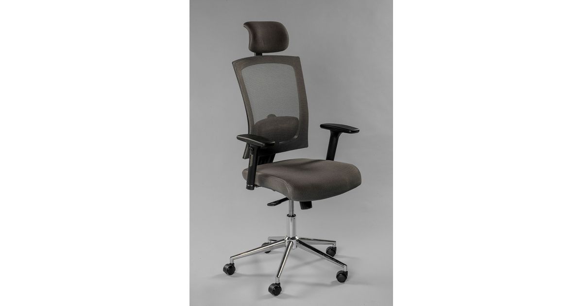 Töötool VIRGINIA 5212 peatoega, reg. käetoed, seljatugi hall võrk/ kandevõime kuni 140kg/hall kangas, jalarist kroom