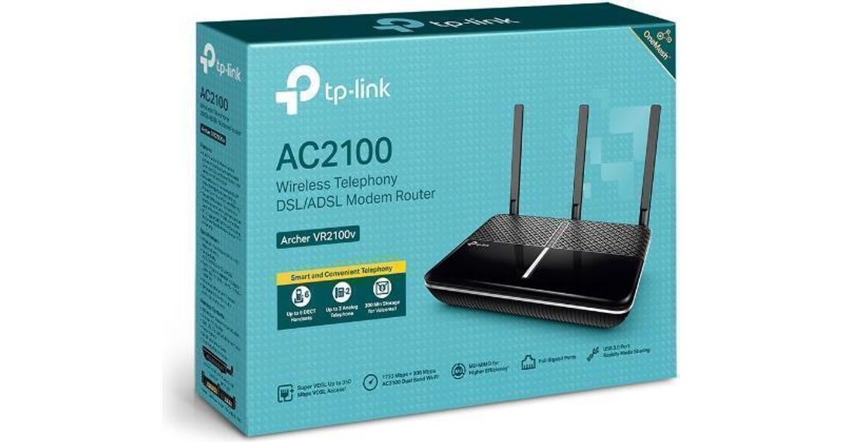 TP-LINK Archer VR2100v, Wi-Fi 5 (802.11ac), Dual-band (2.4 GHz / 5 GHz), Ethernet LAN, 3G, Black, Tabletop router