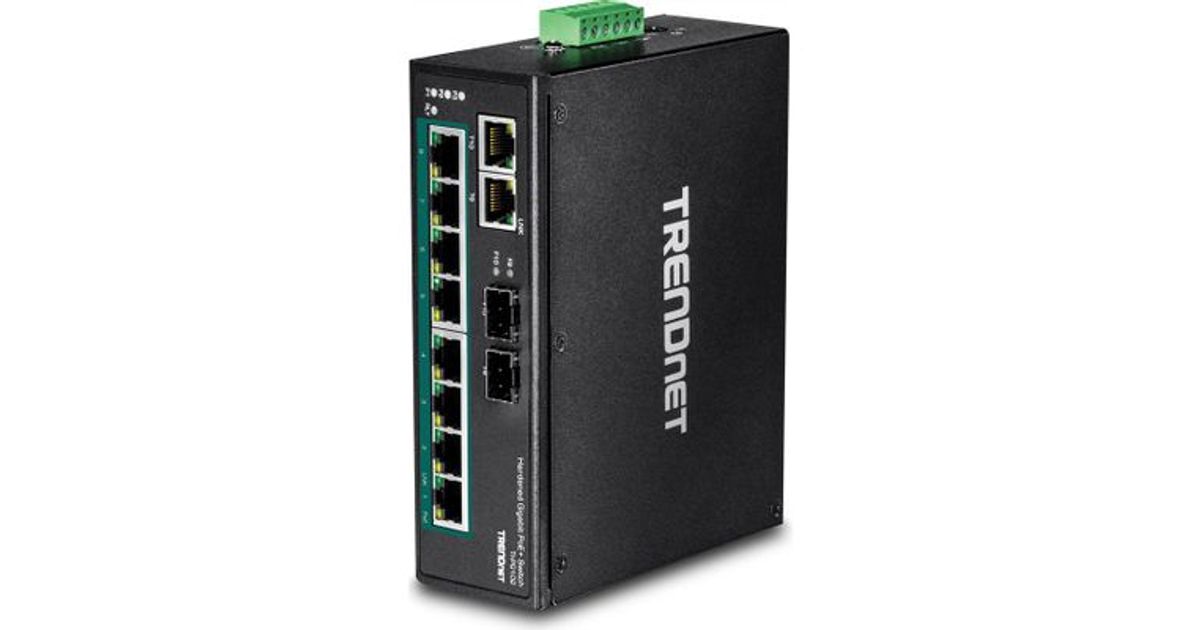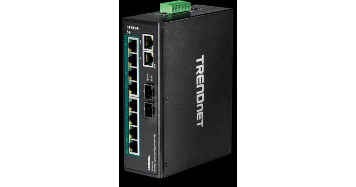 TRENDnet’s 10-Port Industrial Gigabit PoE+ DIN-Rail Switch, model TI-PG102, has eight gigabit PoE+ ports with a 240 W PoE power budget, plus two gigabit RJ-45 / SFP shared ports. Users are able to connect eight PoE+ devices to the switch, while still providing two gigabit ports for additional network connections. The switch is equipped with an IP30 rated metal enclosure, designed to withstand a high degree of vibration and shock, while operating within a wide temperature range of -40° – 75°C (-40° – 167°F) for industrial environments.