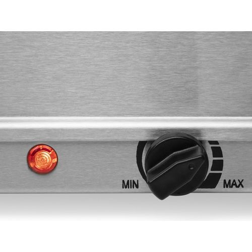 The temperature of the Tristar BP-6285 Buffet Server can be adjusted with the thermostat. The power indicator light shows when the hot plate is on. There is also a keep warm function that makes sure that your food does not get cold.