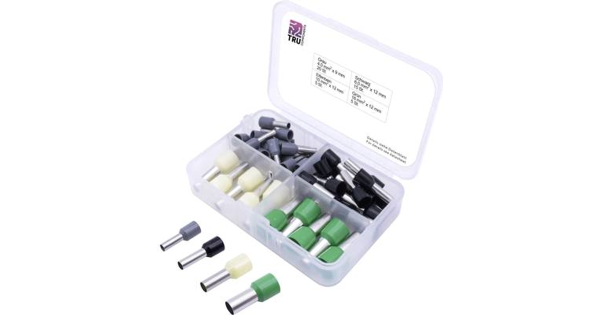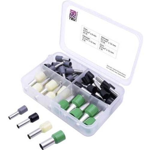 TRU COMPONENTS T1903C025 Aderendhülsen-Sortiment 1 x 4, 6, 10, 16 Teilisoliert Grau, Schwarz, Gelb, Grün 45 Teile (T1903C025)