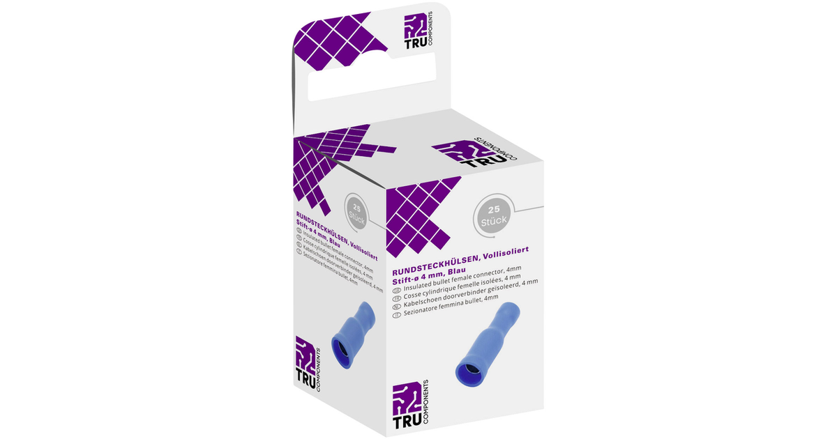 Tru Components T1904C049 Bullet Receptacle 1.50 Mm² 2.50 Mm² Insulated Blue 25 Pc(S)