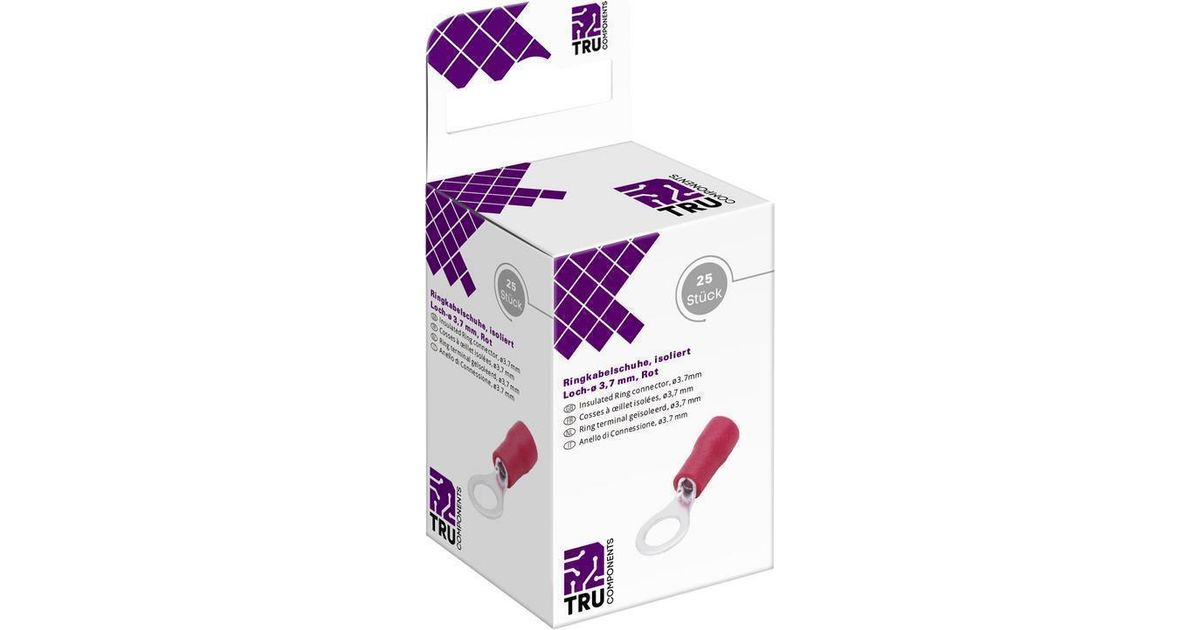 TRU COMPONENTS T2010C283 Ringkabelschuh Querschnitt (max.)=1.5 mm² Loch-Ø=3.7 mm Teilisoliert Rot 25 St. (T2010C283)