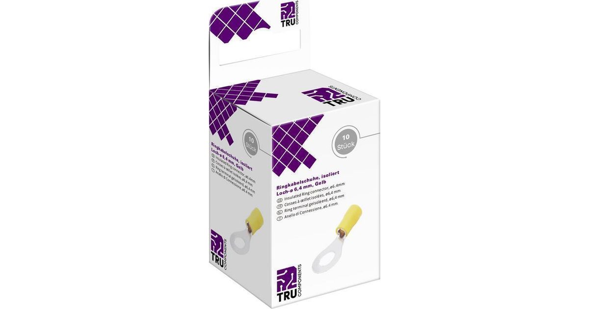 TRU COMPONENTS T2010C295 Ringkabelschuh Querschnitt (max.)=6.0 mm² Loch-Ø=6.4 mm Teilisoliert Gelb 10 St. (T2010C295)