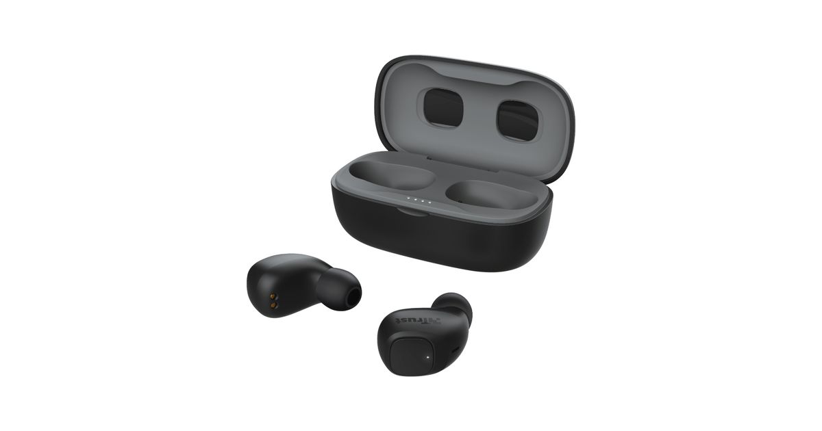 The earphones have a playtime of up to 8 hours on a single charge, but the music doesn’t stop there. Place the earphones in the compact carrying case, and they will start recharging, resulting in a total playtime of up to 18 hours on the go.