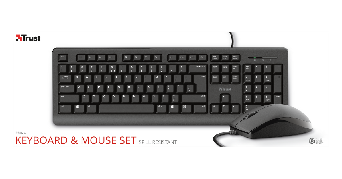Trust Primo, Full-size (100%), USB, Membrane, Black, Mouse included