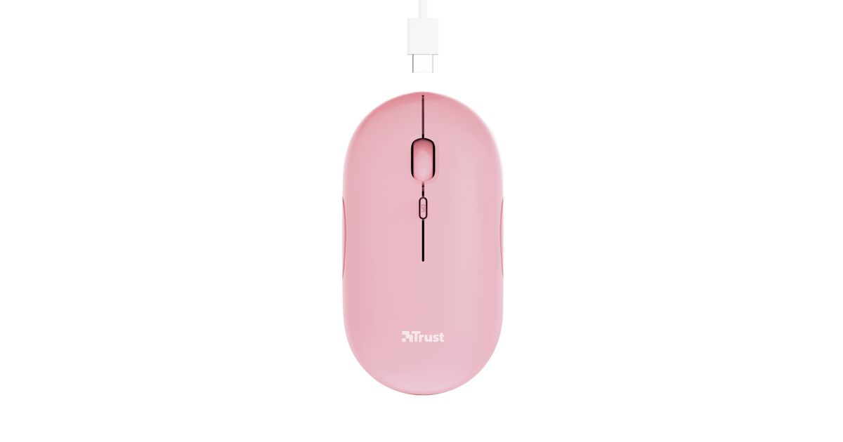 Trust Puck, Ambidextrous, Optical, RF Wireless + Bluetooth, 1600 DPI, Pink