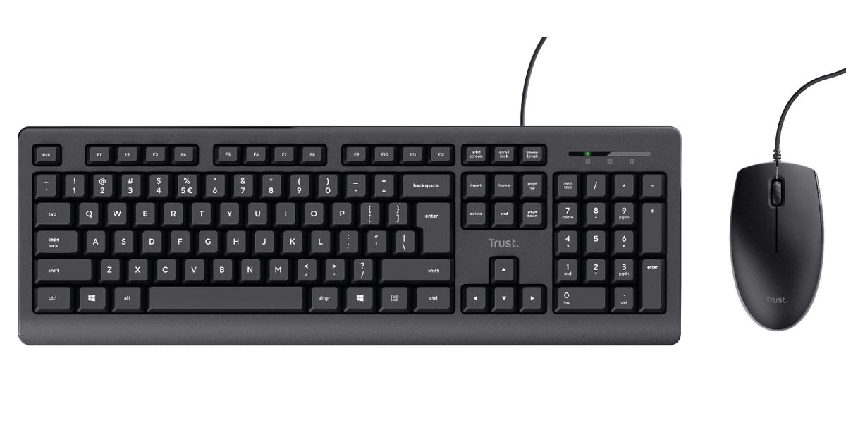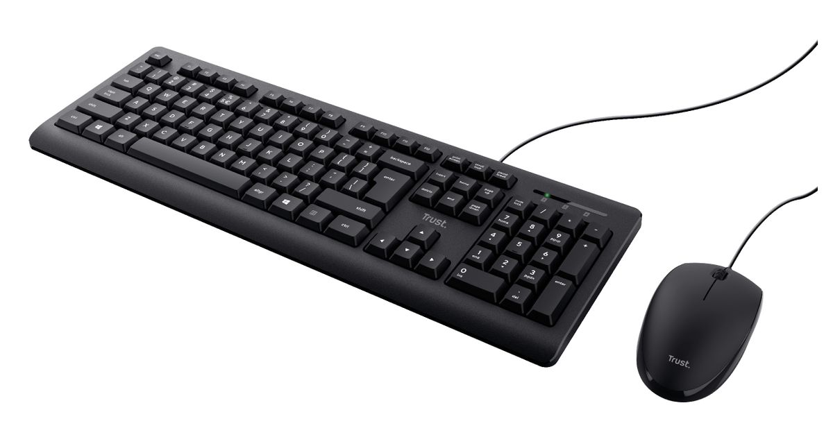 Trust TKM-250, Full-size (100%), USB, Membrane, QWERTZ, Black, Mouse included
