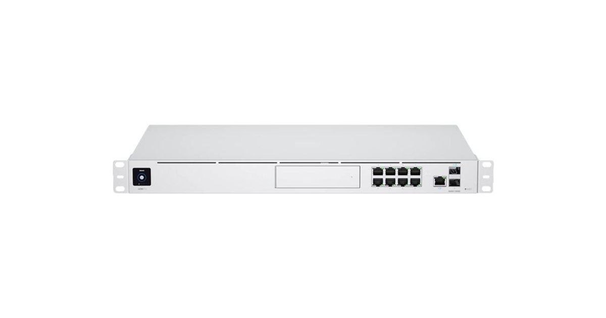 UniFi Dream Machine Pro (UDM-Pro) is an all-in-one enterprise network appliance. UDM-Pro integrates all current and upcoming UniFi controllers with a security gateway, 10G SFP+ WAN, 8-port Gbps switch and off-the-shelf 3.5" HDD support.