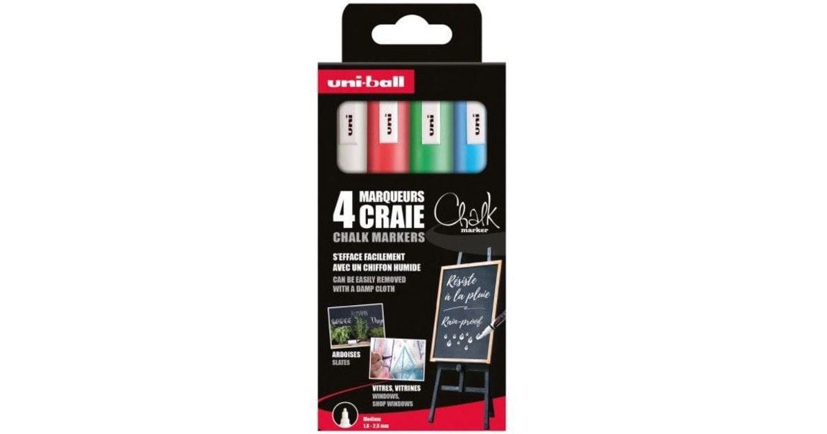 Uni Chalk Marker Sæt 4 STK PWE5 (White, Red, Green, Blue)