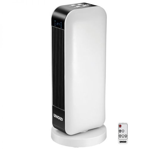 The CERAMIC FAN HEATER Design by UNOLD fits in every household. The fan heater provides four functions, such as OFF, fan, warm air and hot air. It is switched off automatically upon reaching the chosen temperature. Thanks to the 70° oscillation, an optimum air distribution is guaranteed. The practical LED display indicates the temperature and the timer setting of up to eight hours. The powerful CERAMIC FAN HEATER Design is very quiet, light and can be easily taken in every room.