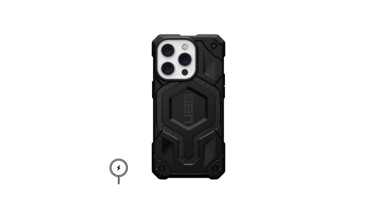 The quintessential, all-terrain, rugged protective case now available with built-in MagSafe module. Monarch Pro is equipped with premium materials for premium protection. Starring 5-layers: a shock-resistant core, an unmistakable signature armor frame, layered with carbon fiber/leather, a polycarbonate shear plate, alloy metal hardware, and impact-resistant rubber surround. Seamless MagSafe charging compatibility. Uncompromised and classic Urban Armor Gear DNA built to go further.