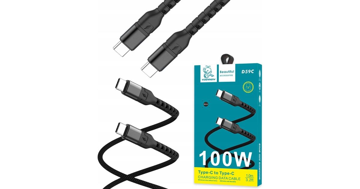 USB cable. DENMEN USB TYPE-C TO TYPE-C CABLE BLACK D59C-B