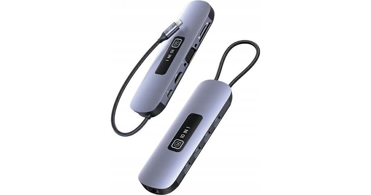 USB HUB Usams USAMS Adapter HUB 10in1 3xUSB 3.0/TF/SD/USB-C/HDMI/RJ45/VGA PD100W gray/tarnish SJ644HUB01 (US-SJ644)