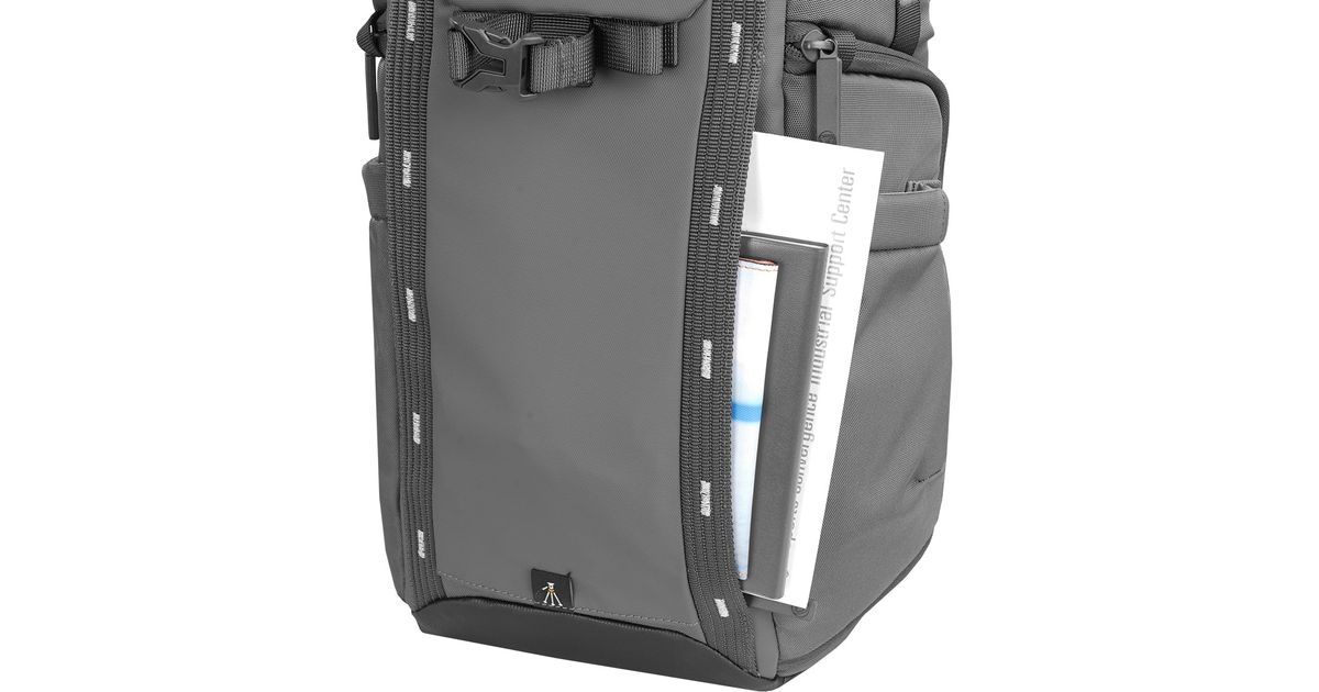 All VEO Adaptor backpacks allow you to carry a travel tripod to get that perfect shot on the go. This is designed to be carried in the center of the back to ensure optimal balance as you go, with a discreet foot holder that can be tucked away when it's not needed. Alternatively, you can use the strap provided and the large side pocket to carry a tripod on the side if needed.