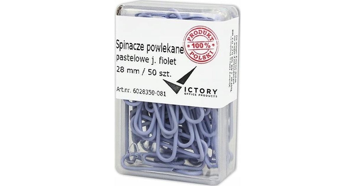 Victory Office Product SPINACZE BIUROWE VICTORY OFFICE 28MM 50 SZT. OKRĄGŁE PASTELOWE JASNOFIOLETOWE POJEMNIK PLASTIKOWY
