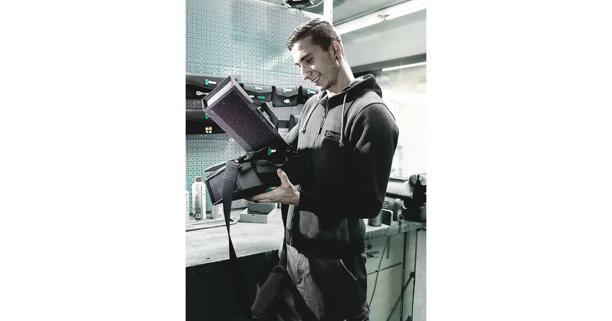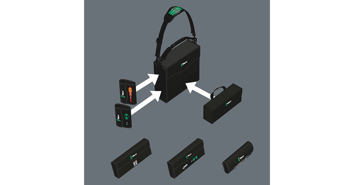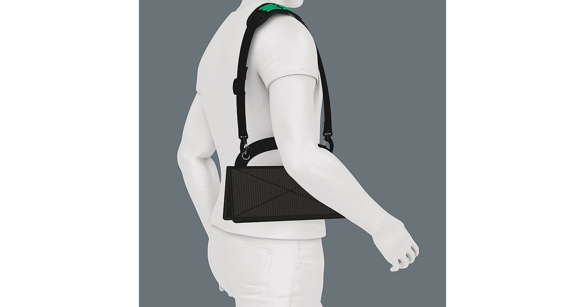 The Wera 2go 1 is the super lightweight and mobile tool carrier for all Wera pouches and textile boxes equipped with hook and loop zone on their reverse sides. The pouches and boxes are easily and securely attached individually to the tool carrier. The hands remain free during transport thanks to the shoulder strap that is included.