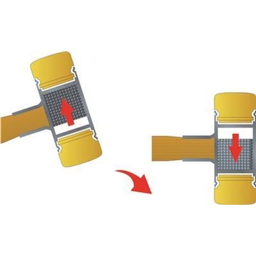 With cast iron balls inside the hammer head for recoilless work.