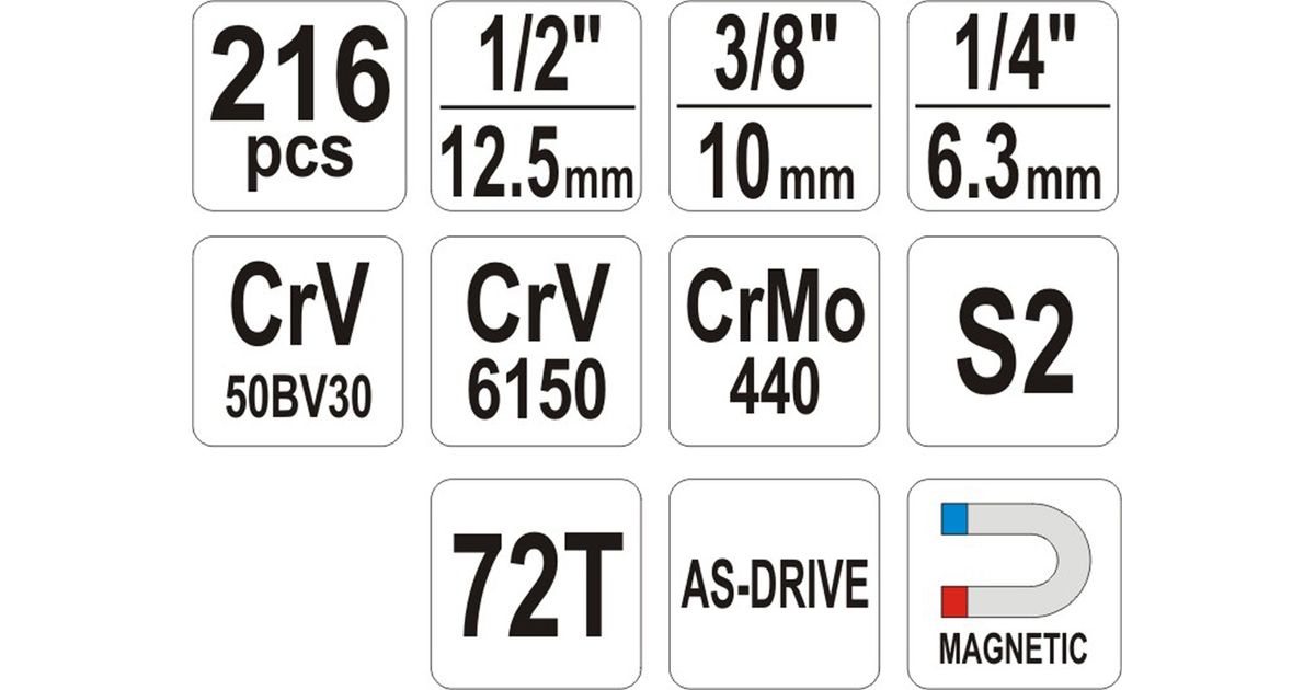 Yato YT-38841, Socket set, 1/2", Metric/imperial, 216 head(s), 6.3,12.7 mm, 1/2,1/4,3/8"