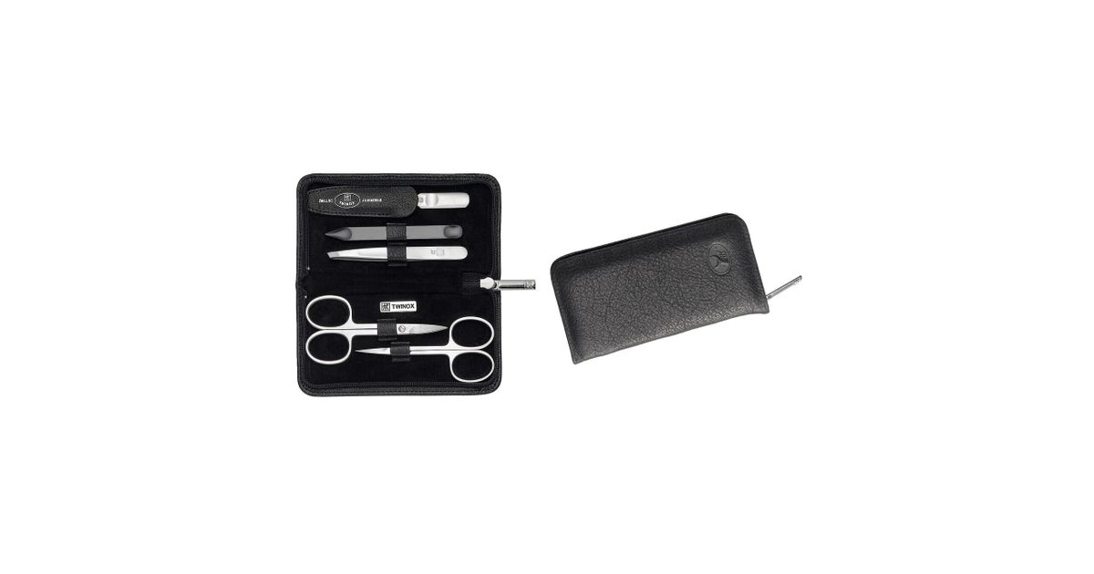 This 5 piece manicure set from the TWINOX series contains everything you need for nail care. You can use the nail scissors or the clipper for cutting your nails easily and accurately then shape and clean them with the enclosed double sided sapphire nail file and nail cleaner & cuticle pusher. There are also a pair of scissors for trimming cuticles. The set also contains a pair of tweezers, which are handy for removing splinters.