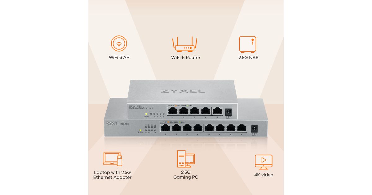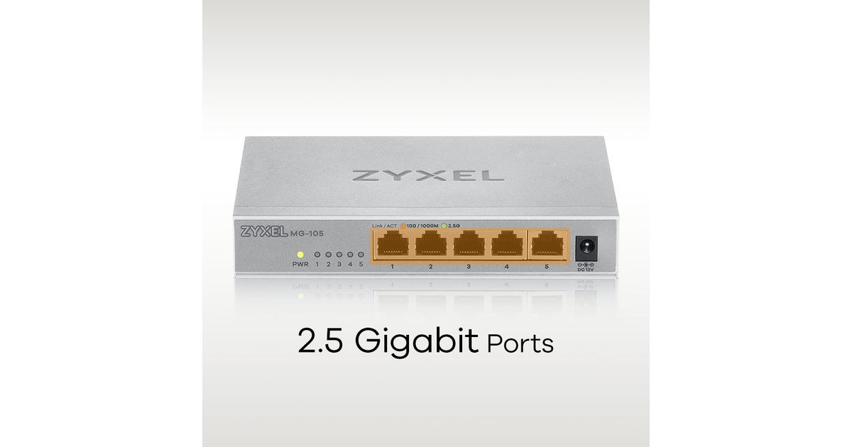 Zyxel MG-105, Unmanaged, 2.5G Ethernet (100/1000/2500), Full duplex, Wall mountable