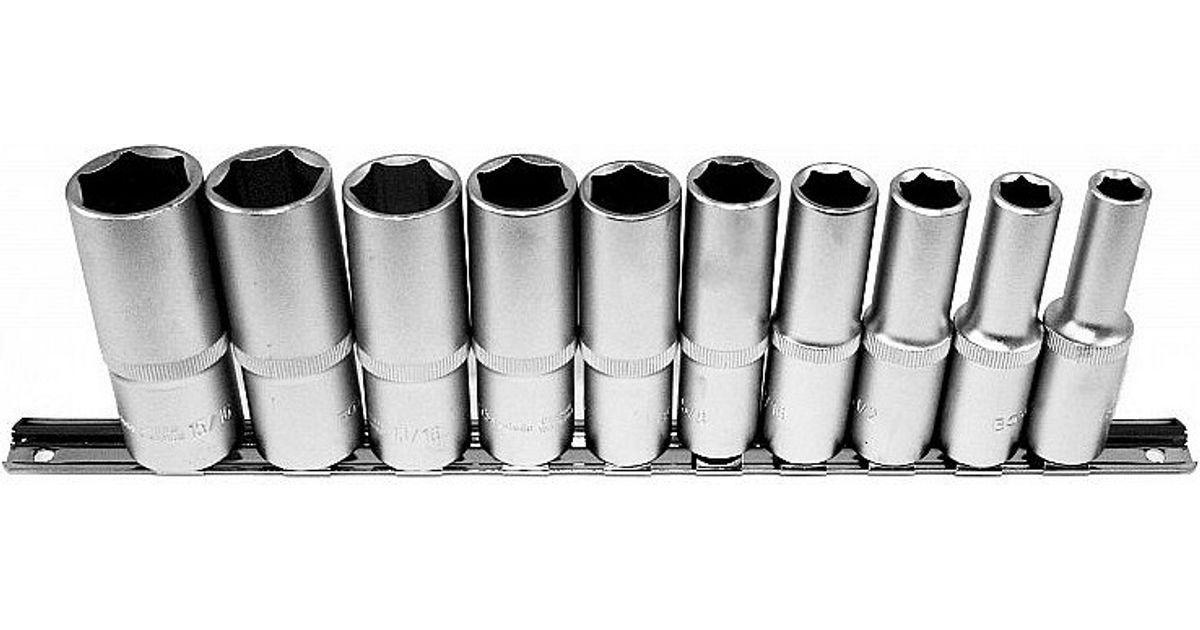 77 mm pikkused padrunid. Kõikidel mõõtudel on padruni välisküljel käsitsikeeramise rihveldus. Tollmõõdud.Komplekt sisaldab:1/2” pikk padrun 3/8”-7/16”-1/2”-9/16”-5/8”-11/16”-3/4”-13/16”-7/8”-15/16”