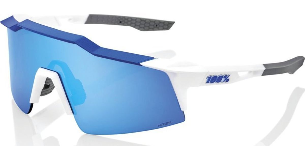 100% 100% SPEEDCRAFT SL Matte White / Metallic Blue glasses - HiPER Blue Multilayer Mirror Lens (Blue Multilayer Mirror Lenses LT 15% + Clear Lenses LT 93%) (NEW 2021)