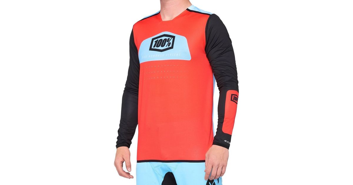 100% Meeste T-särk 100% R-CORE X Jersey pikkade varrukatega fluo punane must suurus. L (UUS)