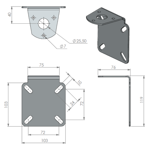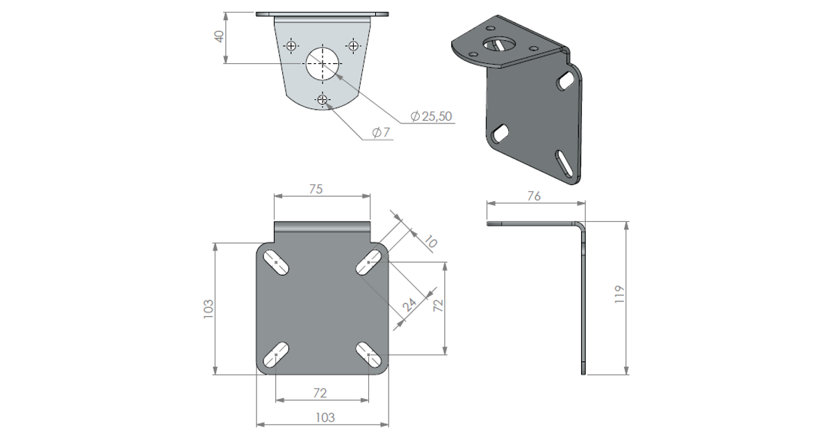 10000-173 roostevaba seinakinnitus L-kujuline või torule (Ø 25 mm)