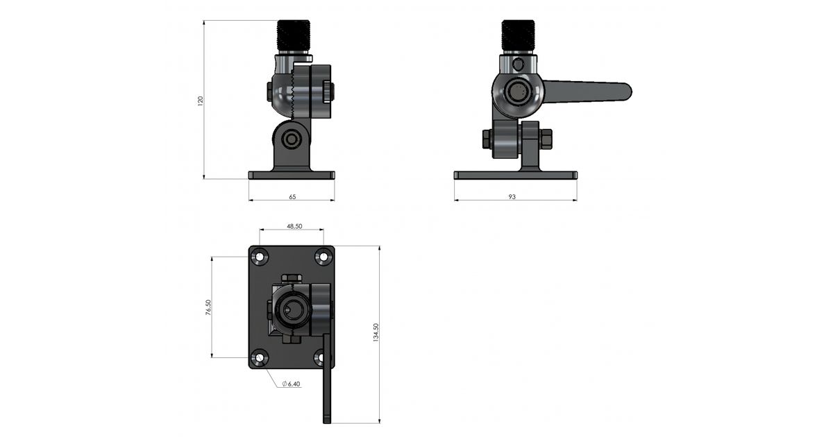 10000-323 4-suunas kallutatav kinnitus T HD 1"-14NF, kroomitud messing