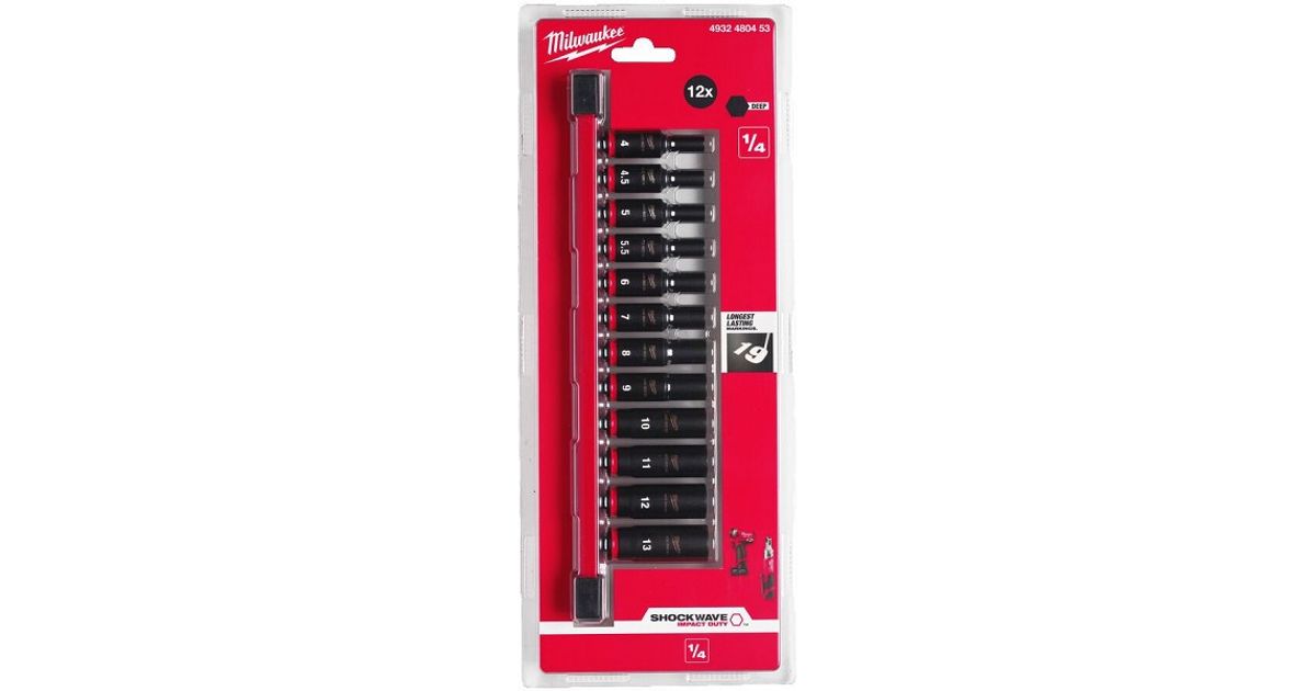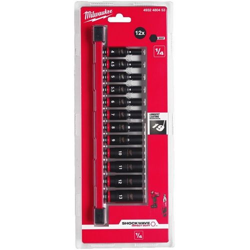 12-Os. 1/4" Pikkade Löökpadrunite Komplekt 4-13Mm Milwaukee