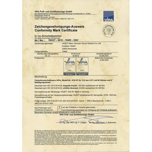 1/2" Tirrvõti 90H 275Mm "Hiper" 1000Nm Hazet (Made In Germany)